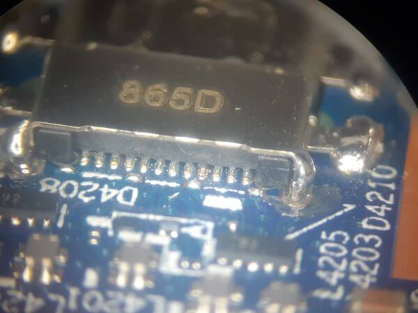 分解し、Type-Cコネクタを確認します。はんだでひび割れがあるようです。