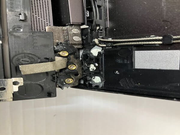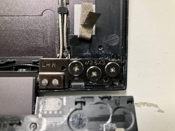 分解すると、完全にネジでヒンジを固定する箇所が破損していました。