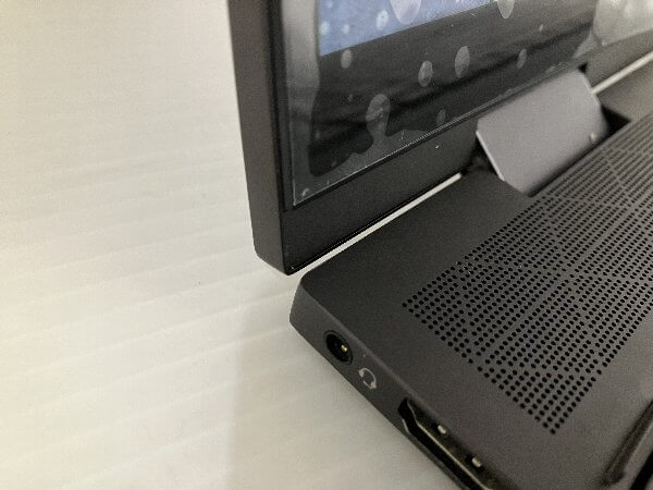 左側のヒンジが飛び出しています。液晶パネルのガラスも割れています。