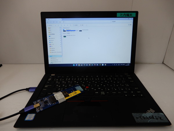 SSDを取り外し、データを確認するため、アダプターに繋げます。