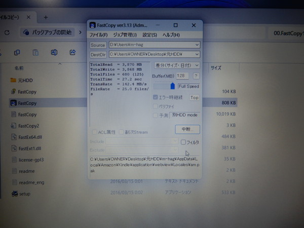 元のパソコンのデータ収納媒体はHDDではなくSSDです。