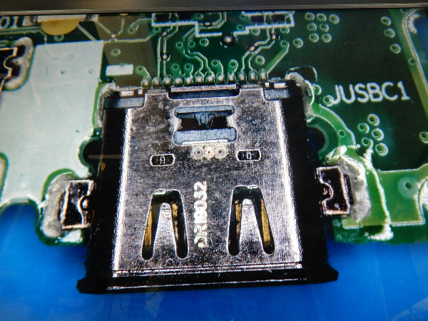 また、Type-Cコネクタはマザーボードに直付けされており、技術者のスキルが必要なのと、メーカー修理では流れ作業で役割分担している仕組み上、修理に時間がかかる作業は敬遠されがちです。