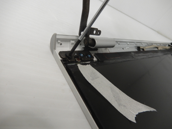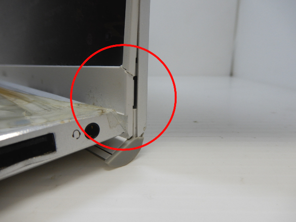 液晶カバーとヒンジが割れて浮いており、電源が入りづらくなっている状態です。