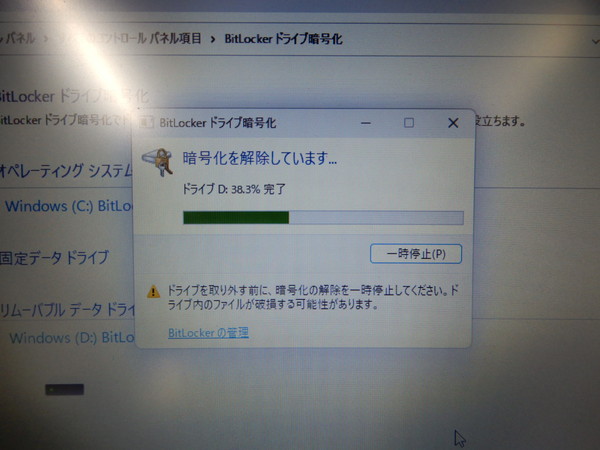 Bit Lockerが解除できないとデータへのアクセスはできません。