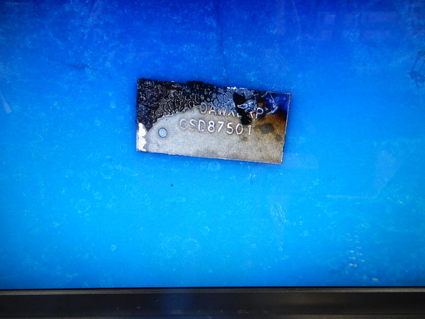 モスフェットが外れ、チップが焼けています。