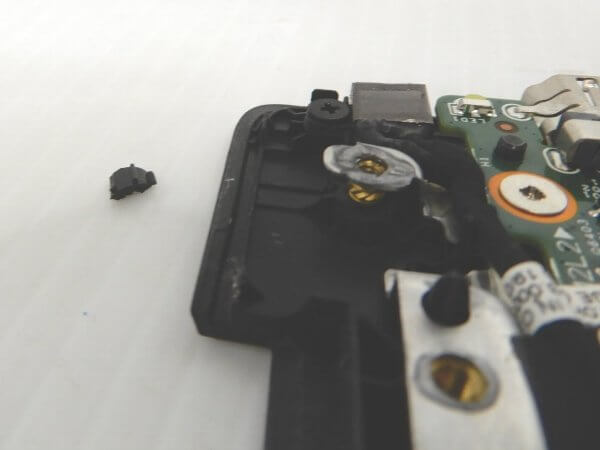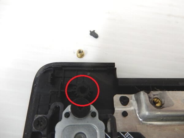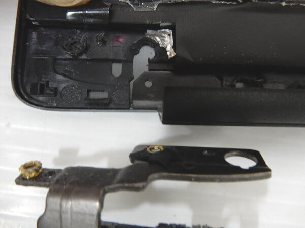 ヒンジを分解すると、ネジでヒンジを固定する箇所が完全に破損しています。
