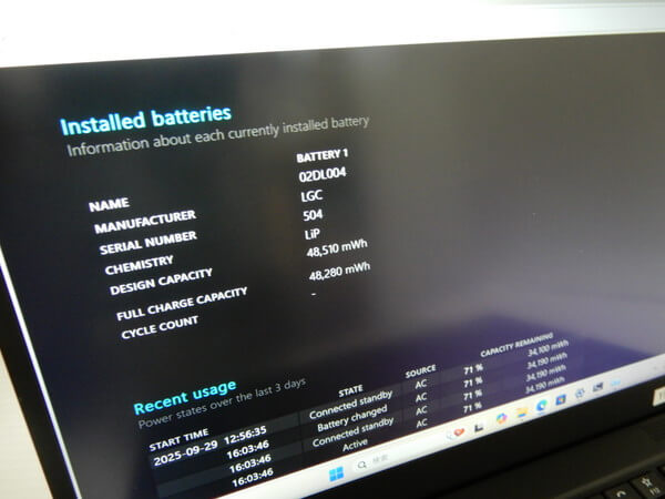 Lenovo X1 Carbon Gen8 バッテリー0%から増えない バッテリー交換