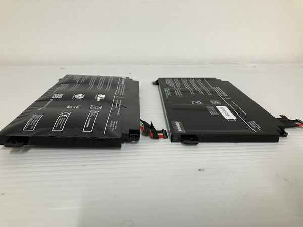 左が膨張したバッテリー、右が正常品です。膨らんでいるのが分かります。