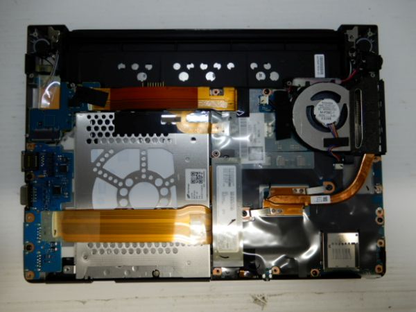 本体カバー側も曲がっているようで、パソコンを置いてもがたつきがあります。