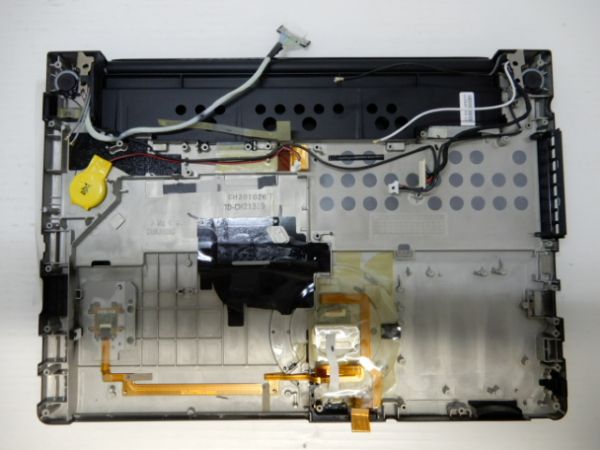 動作に異常はありませんが、パームレスト側に亀裂やへこみが見られます。