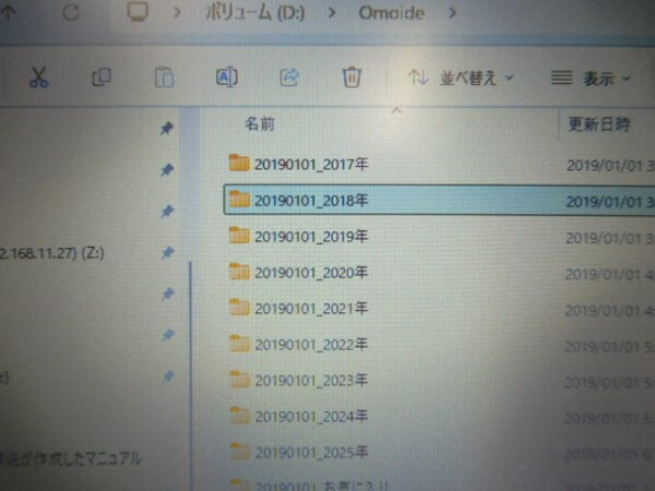 2つのフォルダが出来ていて、そこに全ての写真が入っています。年毎の設定でも書き出し出来きました。