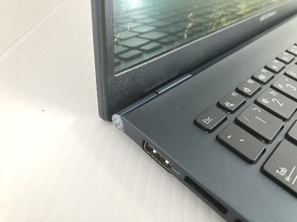 左側のヒンジが破損しています。モデルはUX3402Zです。