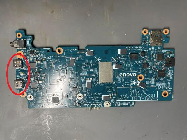 分解し、マザーボード上で故障しているType-Cコネクタを交換しました。