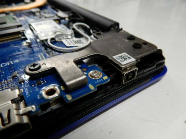 また、DCジャックはマザーボードに直付けされており、技術者のスキルが必要なのと、メーカー修理では流れ作業で役割分担している仕組み上、修理に時間がかかる作業は敬遠されがちです。