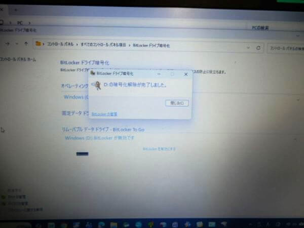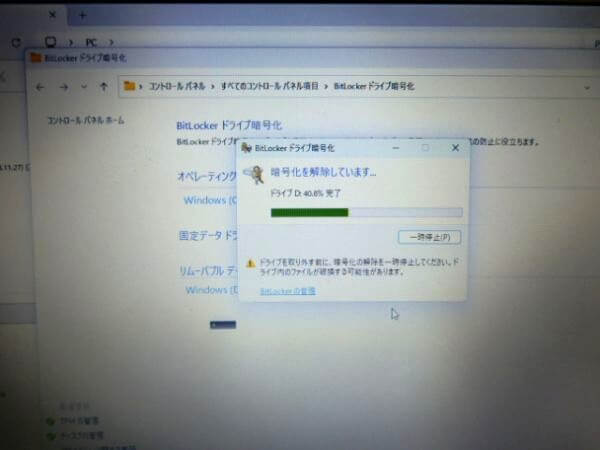 BitLocker 回復キーを確認し、暗号化を解除します。