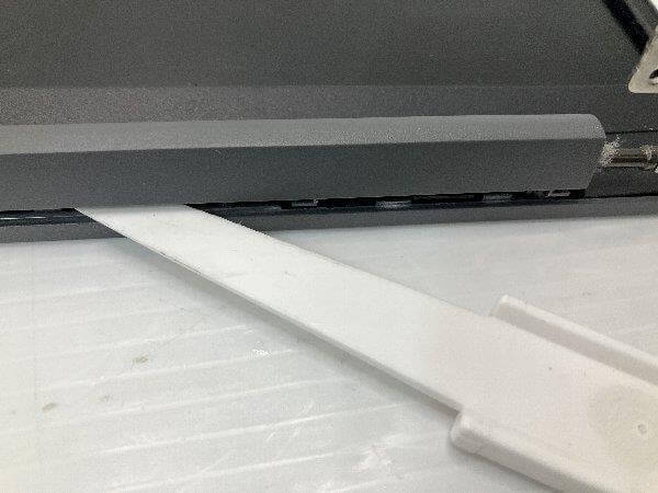 液晶パネルの下側のカバーにヘラを入れて取り外し