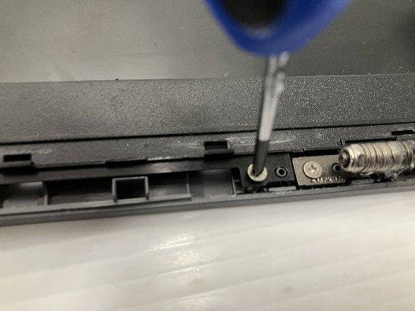 液晶パネルの外側のカバーを固定しているねじを取り外し