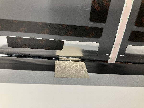 液晶パネルの左右上にある両面テープを上に引き抜く