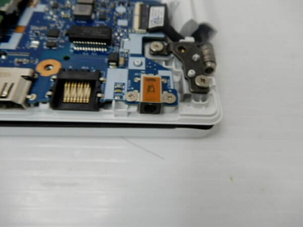 また、DCジャックはマザーボードに直付けされており、技術者のスキルが必要なのと、メーカー修理では流れ作業で役割分担している仕組み上、修理に時間がかかる作業は敬遠されがちです。