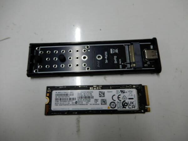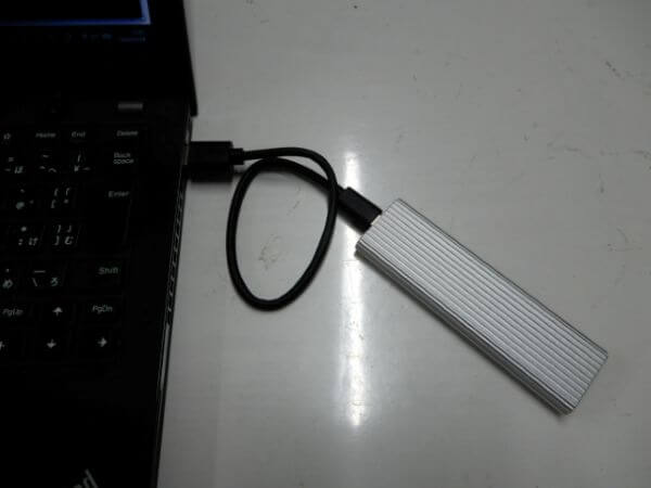 外付けケースに収納し、データにアクセスできるか試します。