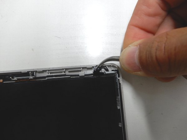 右側のヒンジ固定ネジと液晶ケーブルを取り外し
