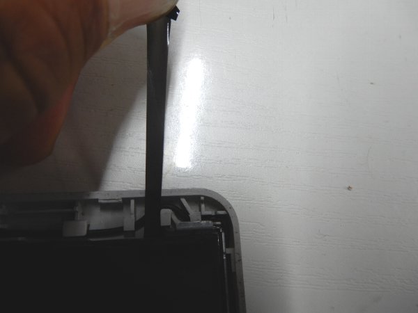 液晶カバーの隙間にヘラを入れてカバーを取り外し